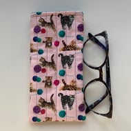 The padded slip in style glasses/sunglasses case is made in this fun bright colours dog print design fabric.