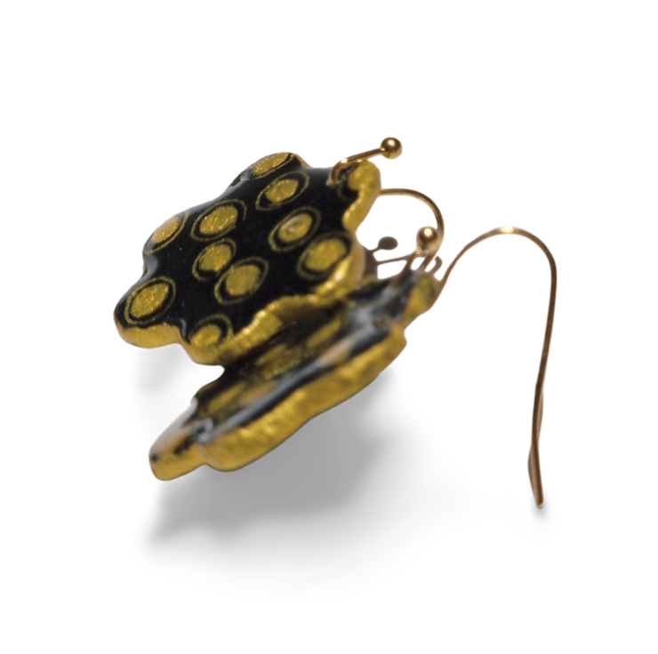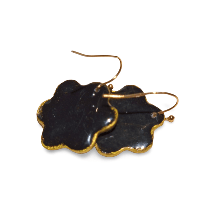 Hand Painted Ceramic Drop Earrings - Black and Gold
