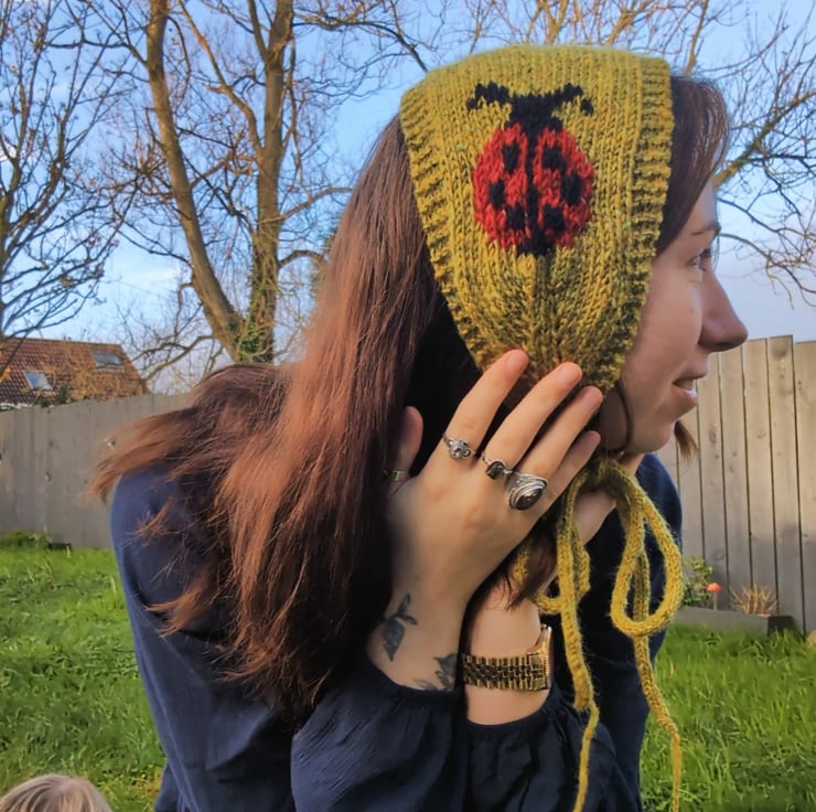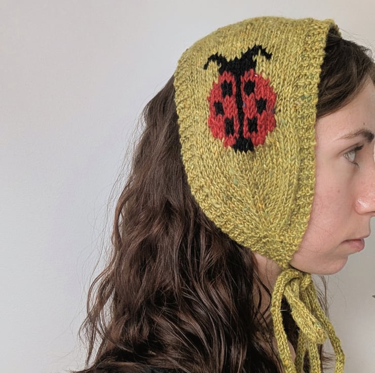 A handknit ladybird bonnet to keep your ears warm this winter! Made using Donegal Yarns Faerie Folk, this beautiful bonnet is crafted with 70% merino wool and 30% mohair.
