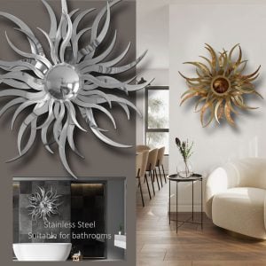 Ideal for both modern and minimalist settings, the Celestial Sun Metal Wall Art is designed to make a bold statement, drawing attention and admiration wherever it is displayed. Its resilient stainless steel construction ensures lasting beauty—even in humid environments—making it a stylish and practical option for bathrooms as well as living rooms, offices, and entryways.
