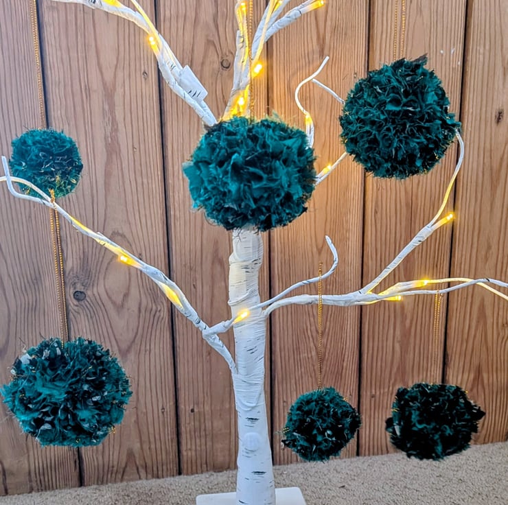 Ditch the drab and deck your halls with these gorgeous sari pom pom decorations! Handmade with vibrant, repurposed sari silk, they bring a beautiful pop of color, soft texture, and global charm to your holiday decor. Perfect as unique gifts or to add a festive flair that truly stands out.