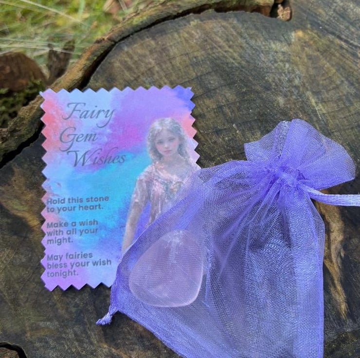 Fairy Gem Wishes is a beautiful little card with a unique poem personally written helping to connect to the fairy realm asking for them to bless your crystal with luck. You can then carry your crystal around with you. A lovely gift for young and old.