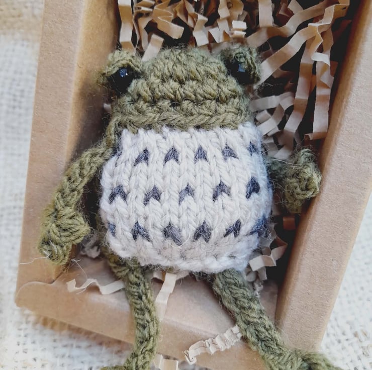 Each frog is hand-knitted using soft yarn and finished with their own characterful expression.