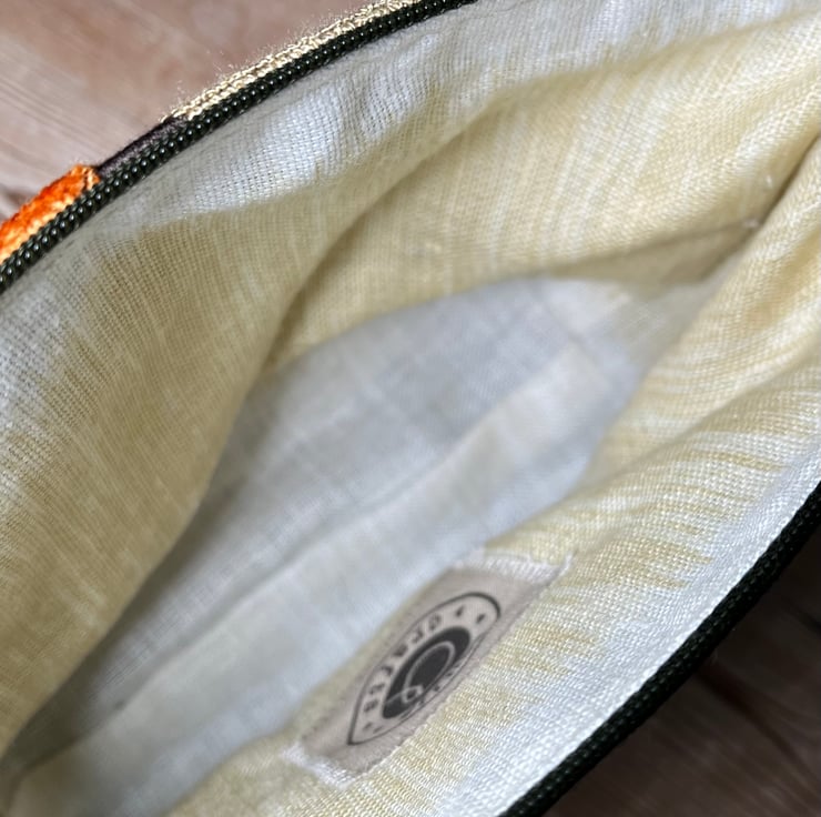 The pouch is fully lined with another sample swatch - a pale yellow and cream linen. There is a layer of interfacing to give the pouch stability.