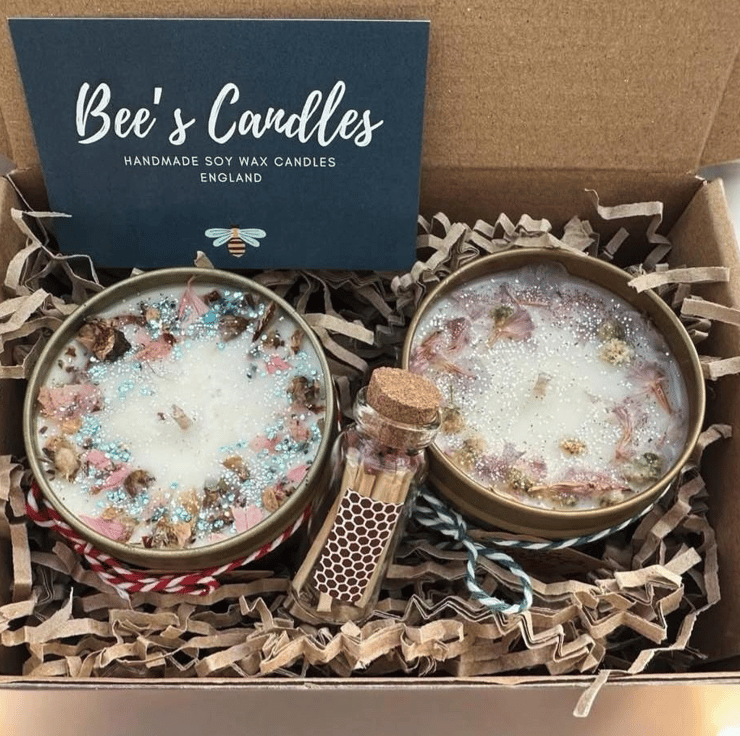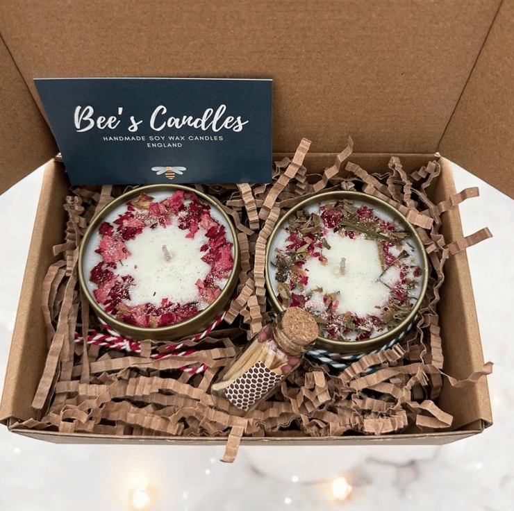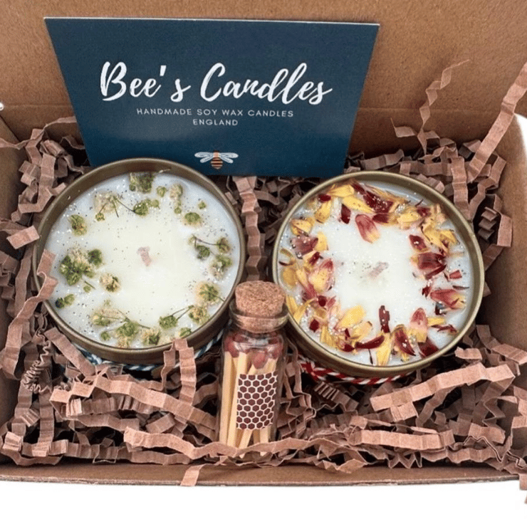 Bee's Christmas Gift Box Two 5oz Soy Wax Candles and Matches