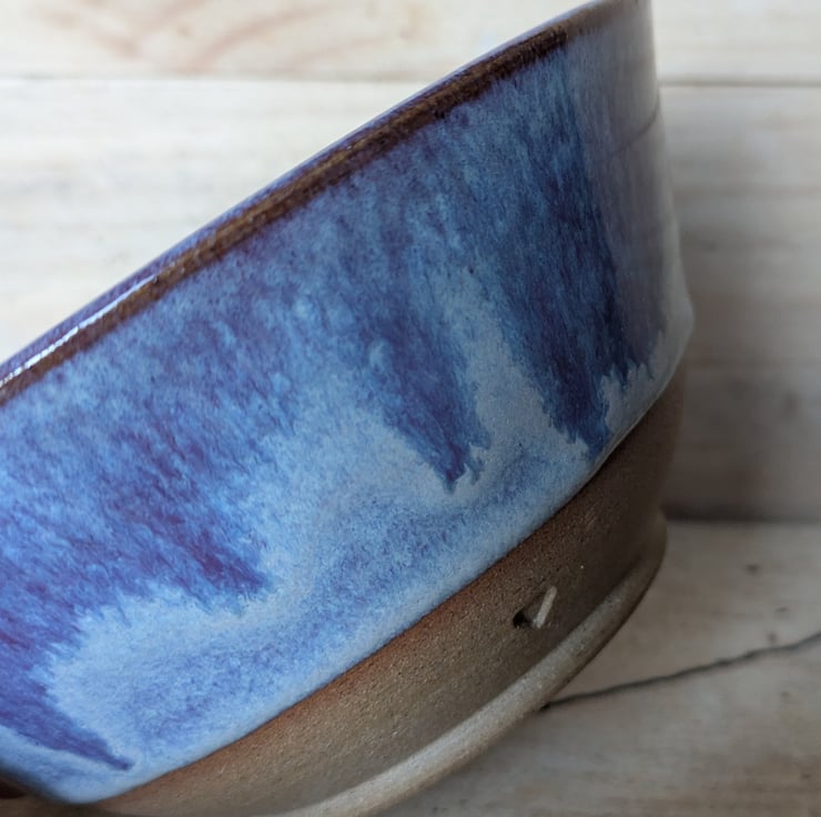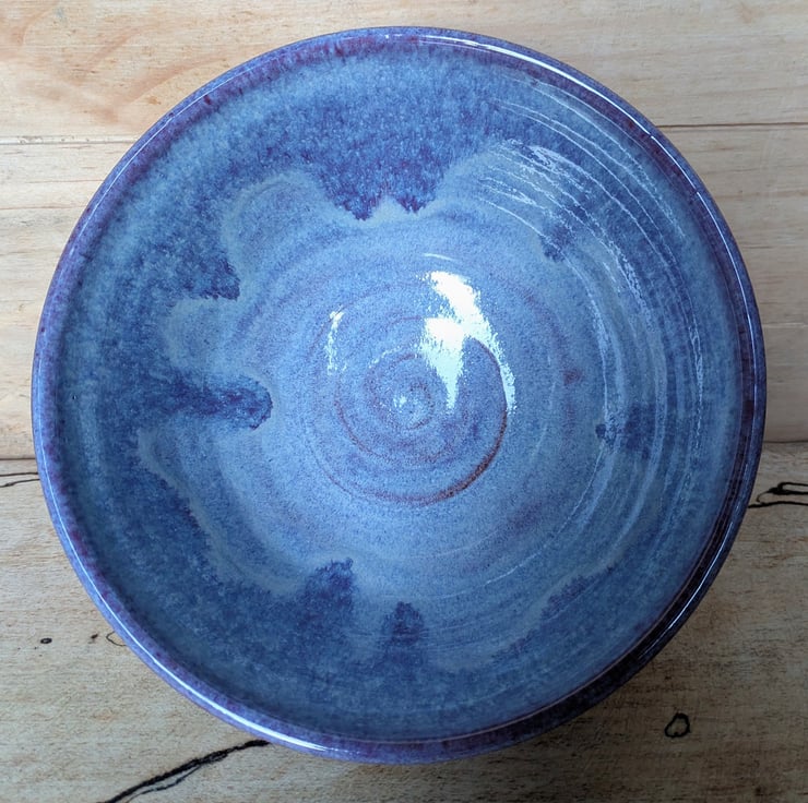 I have now managed to get this glaze combo a bit darker and really like the colour this came out. It's a bit of a darker purple than the photos show and is larger than the nibble bowls listed. I've used a toasted clay and left the bottom outside section without glaze so you can feel the clay. The glaze also breaks over a swirl on the base inside. Fired in a kiln at a stoneware temperature (c1200 degrees) which makes them more durable.