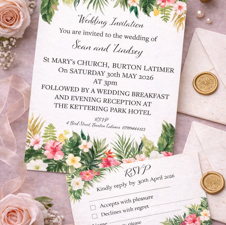 You’ll love how this invitation, RSVP and envelope work together as a coordinated set, with the option to add a matching details card for extra information. The floral design brings colour and elegance without overpowering the text, making it suitable for a wide range of wedding themes. Handmade envelopes add a premium finishing touch, while personalisation ensures your stationery feels unique and meaningful. With matching pieces available, it’s easy to build a complete wedding stationery suite that flows beautifully from start to finish.