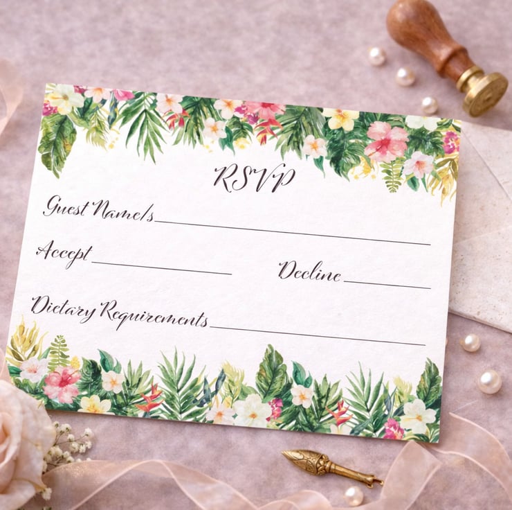Tropical Floral Wedding Stationery Set Invitation, RSVP and Handmade Envelopes