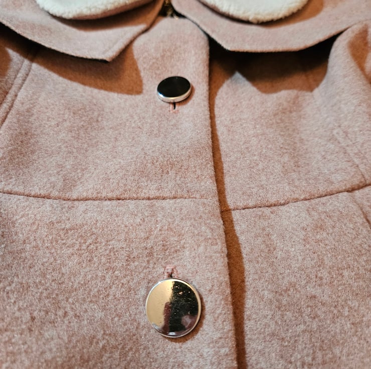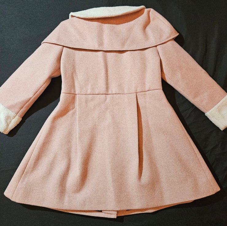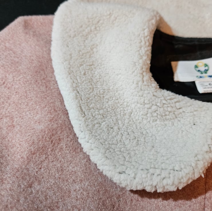 Keep your little one warm and stylish with this elegant blush pink winter coat. The outer layer is crafted from a luxurious cashmere wool blend, offering both warmth and softness, while the sherpa fleece collar and cuffs add a cozy, charming touch. Inside, the coat is fully lined with smooth taffeta, ensuring comfort and ease of wear.