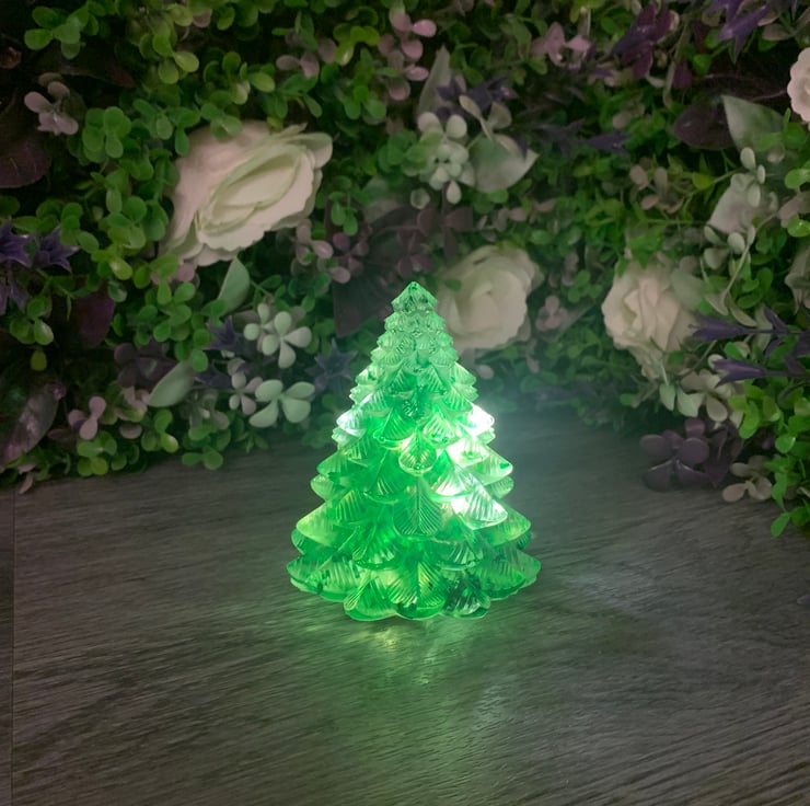 A handmade 3D light up christmas tree in green. Approximately 9.5cm tall, a stunning way to light up any space! Equipped with a set of long-life LED lights. Each piece is unique and comes gift-wrapped, perfect for gifting or treating yourself.