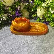 A handmade feather tray in a pink and white, equipped with a small hole to fit incense sticks. Approximately 23cm x 8cm x 2cm, perfect for jewellery, keys, chocolates, soap, you name it! Each piece is unique and comes gift-wrapped, perfect for gifting or treating yourself.