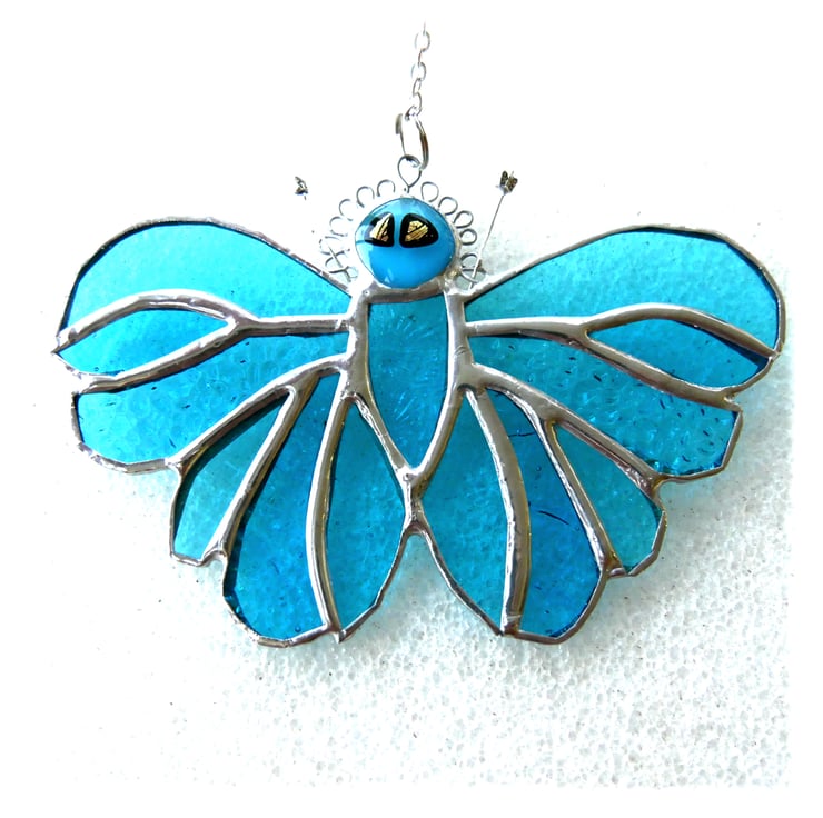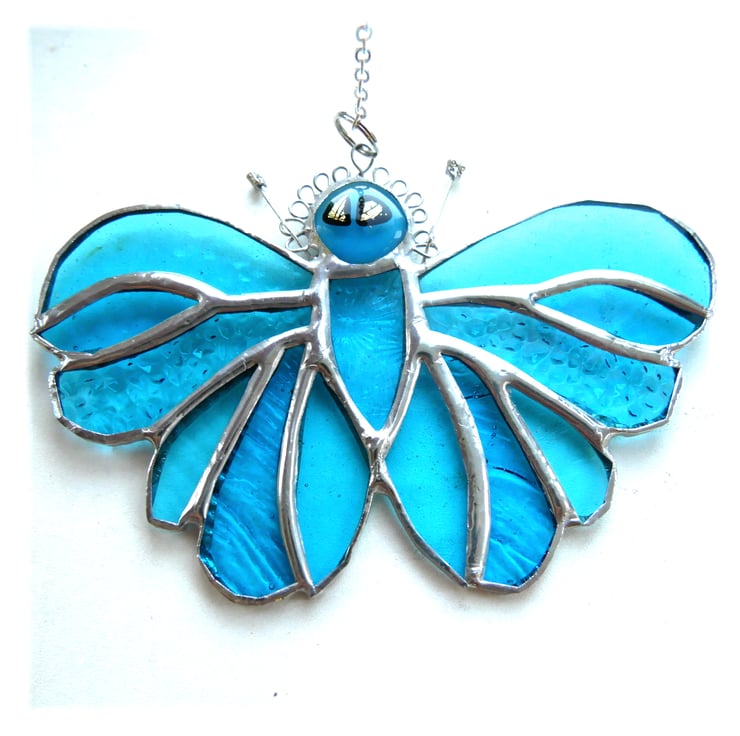 A butterfly to the same design as my Rainbow version but in rather gorgeous turquoise coloured glass.