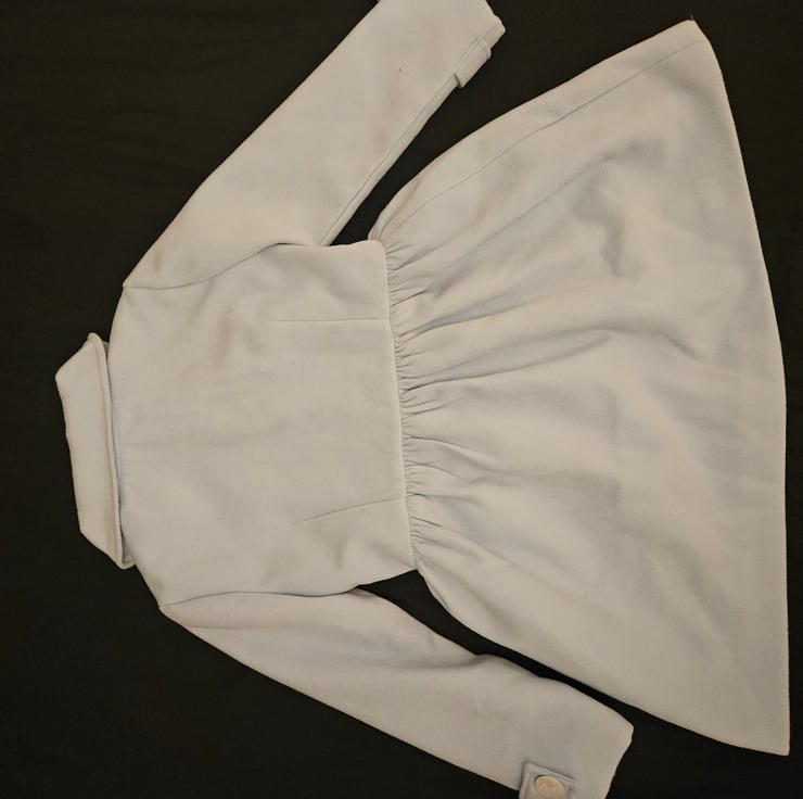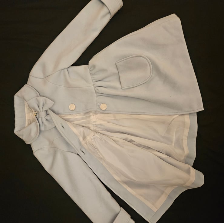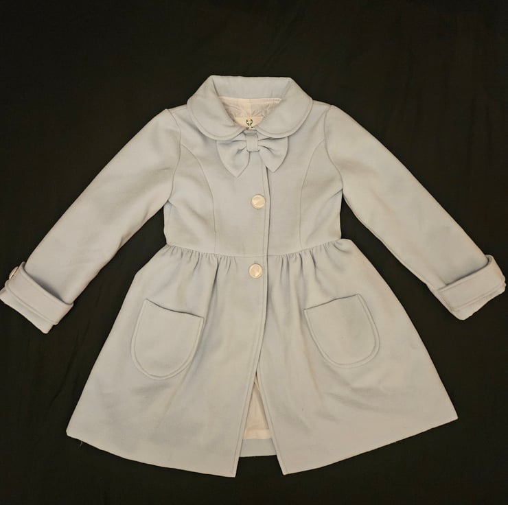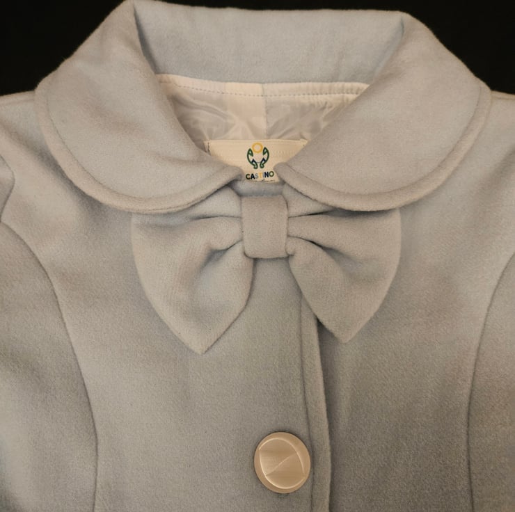 This charming girls’ coat is crafted with a soft polyester-cashmere blend outer fabric and lined with smooth polyester taffeta for extra comfort and warmth. It features a sweet front bow, functional pockets, and a polished silhouette — perfect for both special outings and everyday elegance.