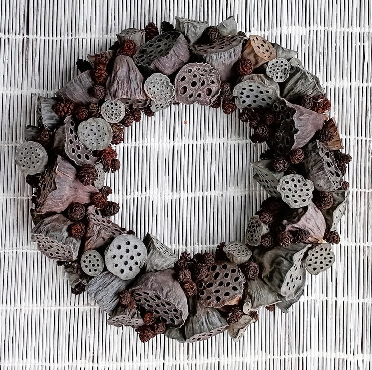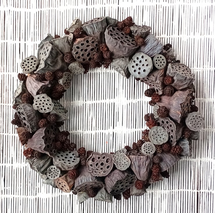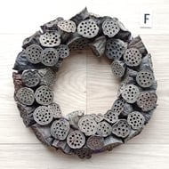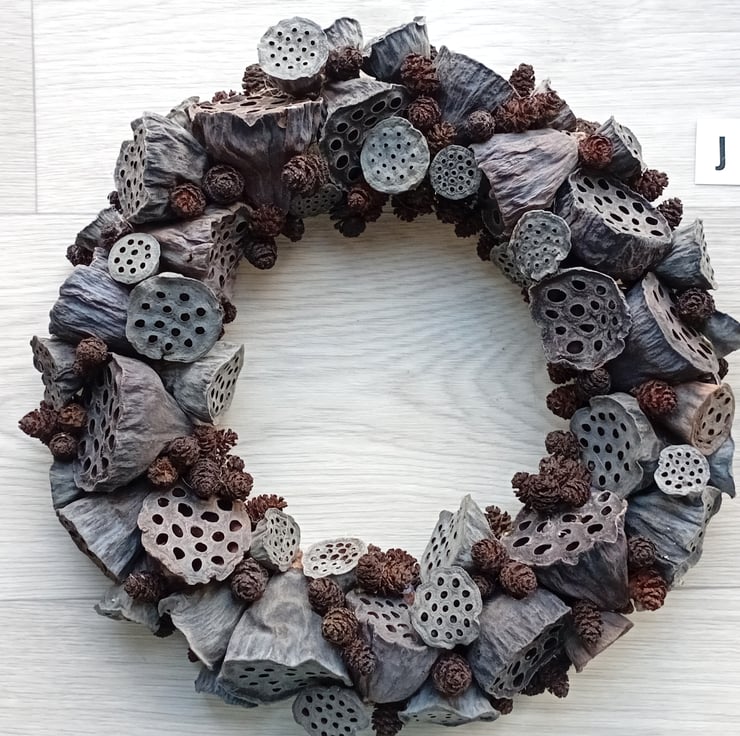 Contemporary MEDIUM 'ALL SEASONS' Wreath made from dried lotus flower seed pods and alder tree cones. Wreath J, (larger version of wreath H)
