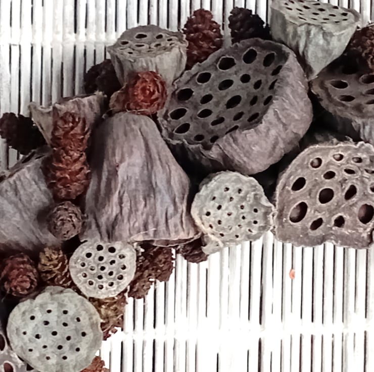 Dried Wreath from Lotus Flower Seed Pods, Alder Cones - J