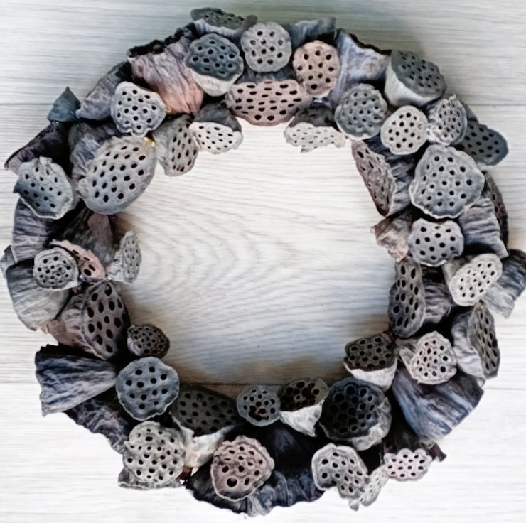 Contemporary Wreath, simple, minimalist, dried lotus pods