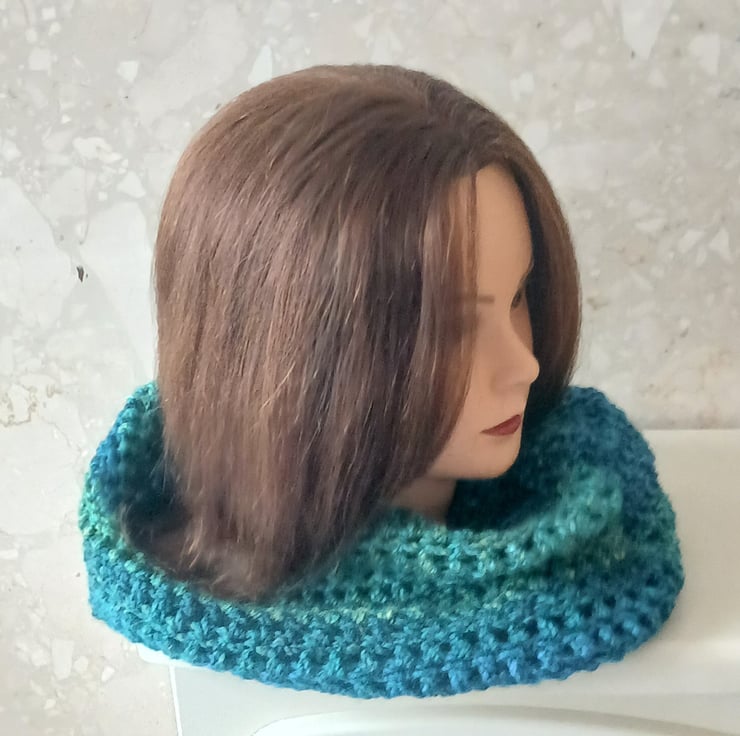 Composition: The cowl is crochet in a simple crochet pattern and there is a back seam.