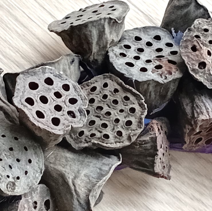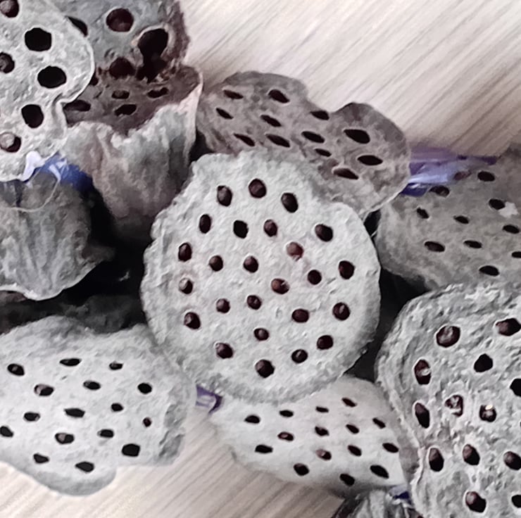 The lotus pods may still have seeds enclosed in their structures.