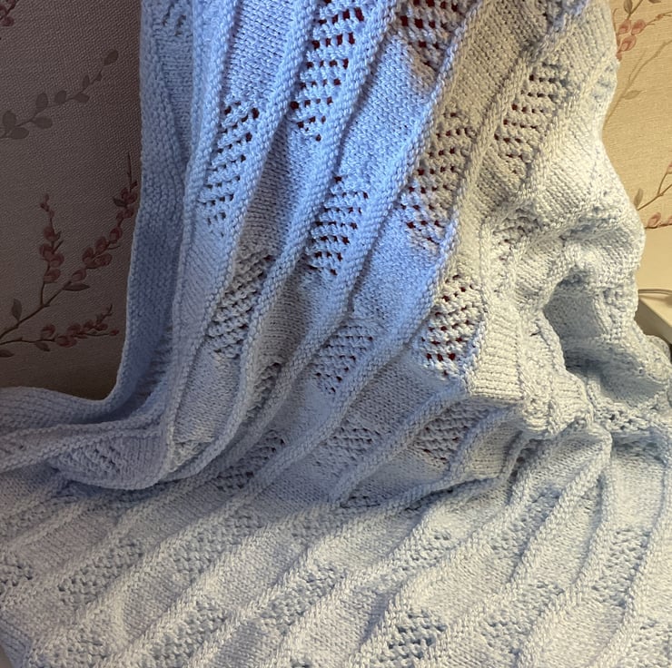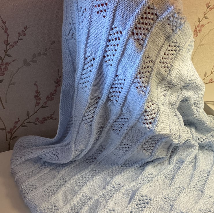 Hand knitted baby pram blanket, nursery blanket baby gift.