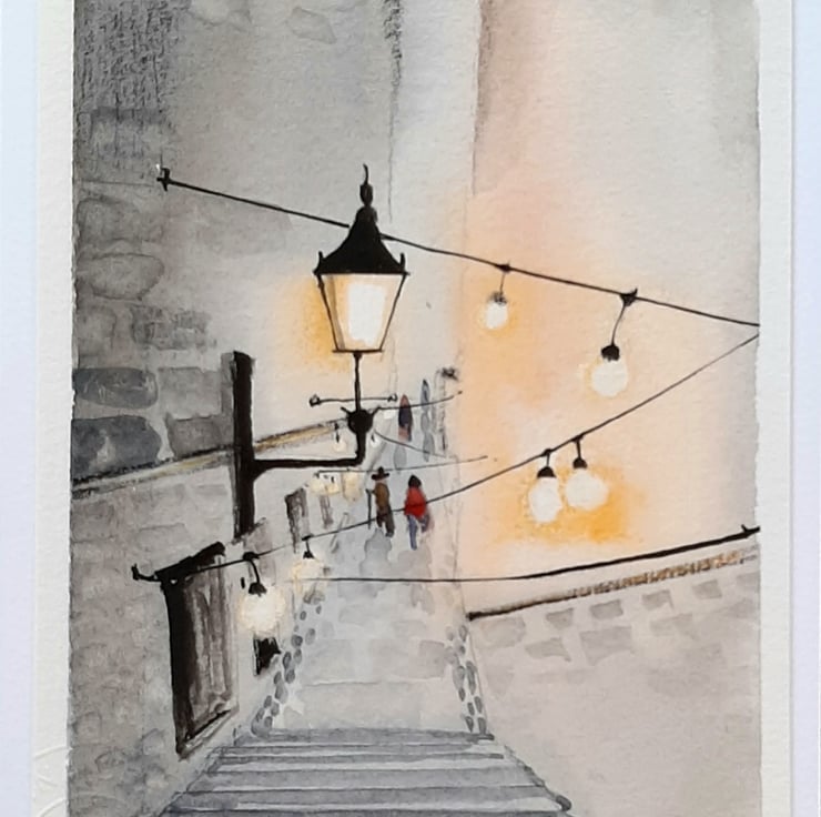 Inspired by a city break, a new brush and a new pot of ink. Lamplight.