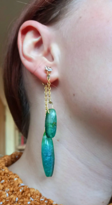 I bought a pair of earrings that dangle front and back so many years ago and I still love them to this day, so I wanted to make a pair of my own and I was very pleased with the result. The front dangle from a diamonte stud and the back one is suspended from the back on a longer chain. The weight is evenly distributed between the two, which holds the stud perfectly in place.