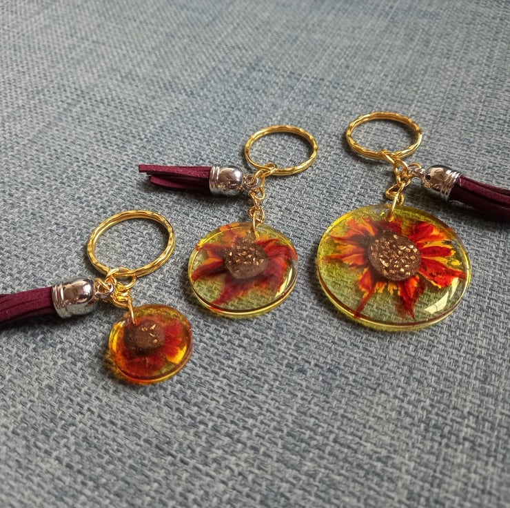 Just look at these firery key chains with oranges, reds and yellows. I loved how these all interacted with each other and are so eye catching, they look unreal! Everyone will be deeply drawn into them, especially with the gold flakes in the centre. Make every day shine.