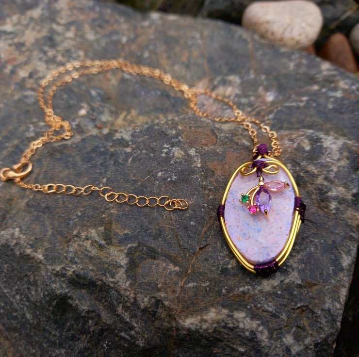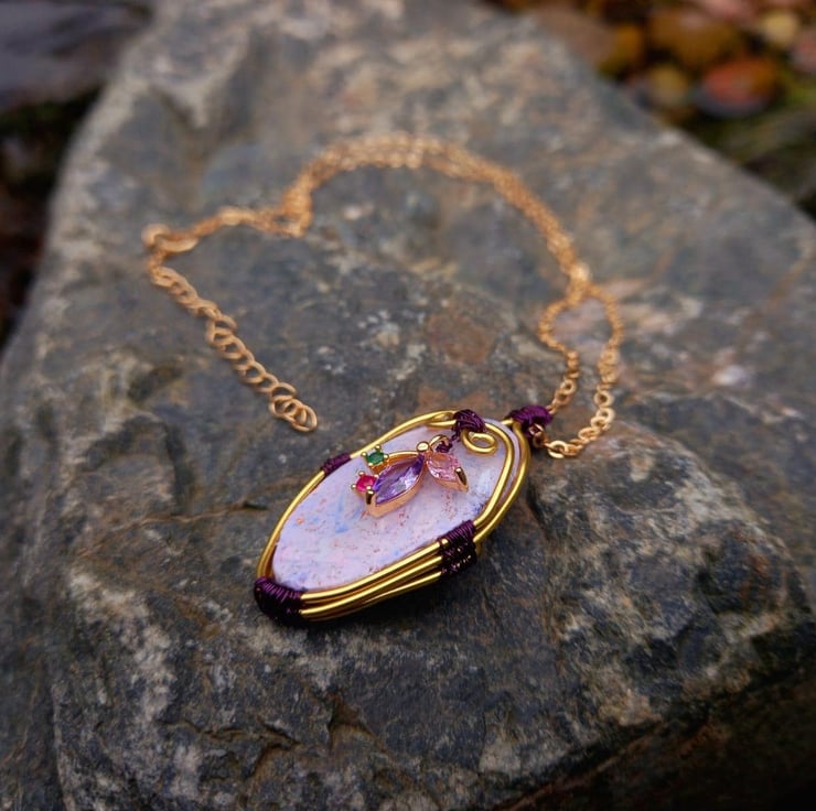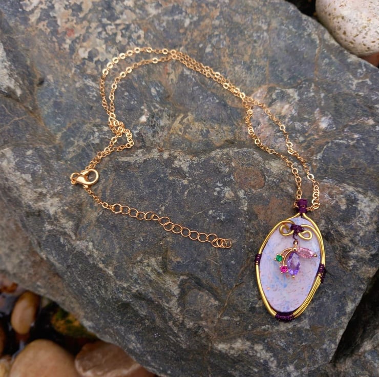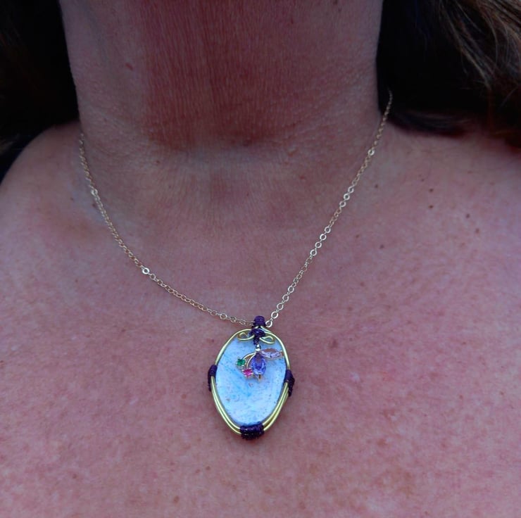Another one for the polymer clay collection. You see many pairs of earrings that are made with polymer but not as many necklaces. So, here is my addition! I love how the purple wire accents the pendant and then everything is topped off with a purple charm for that extra sparkle
