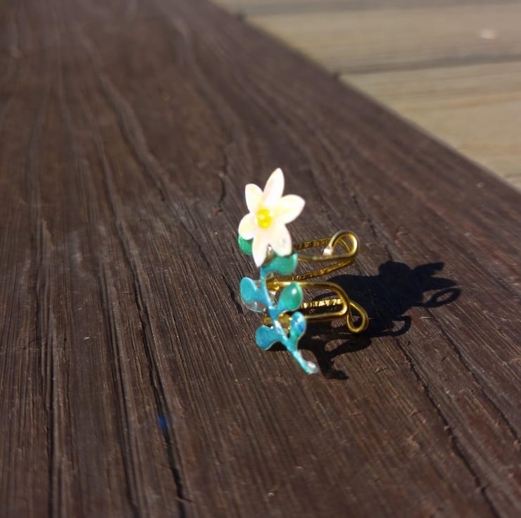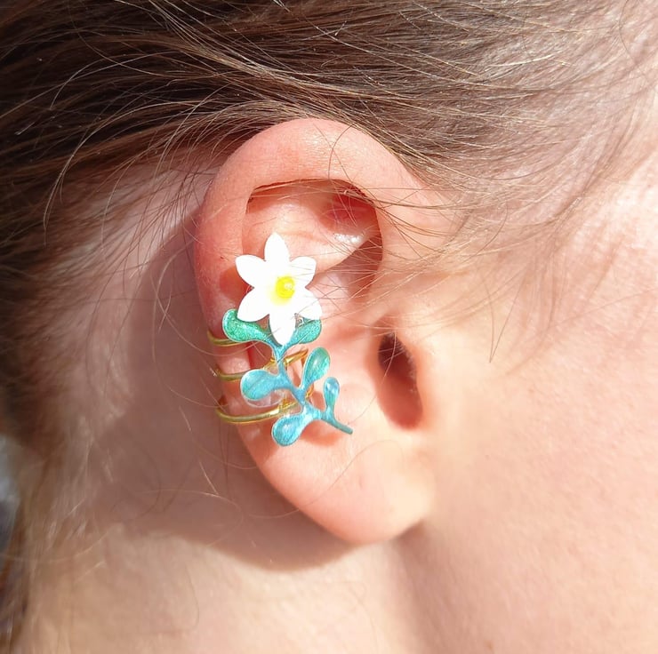 I absolutely fell in love with these when I first made them - another one of those that I "accidentally" made too many of! It is so delicate and sweet but is well protected through the wire cuff itself. It adds a smile to everyone's day and, because it cases the ear, no piercing is needed to wear it. I have worn it nearly everyday since making it and I hope you like it as much as I do.