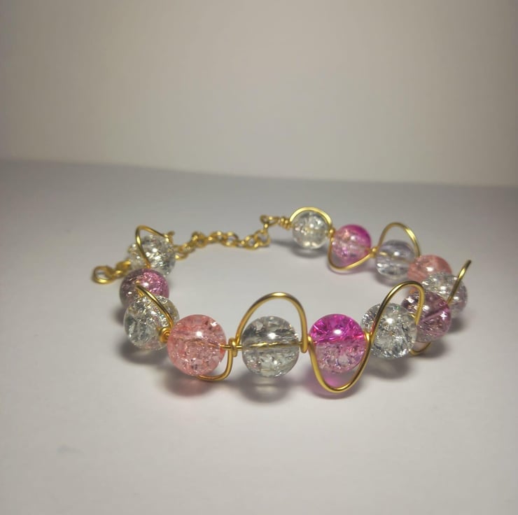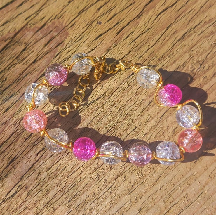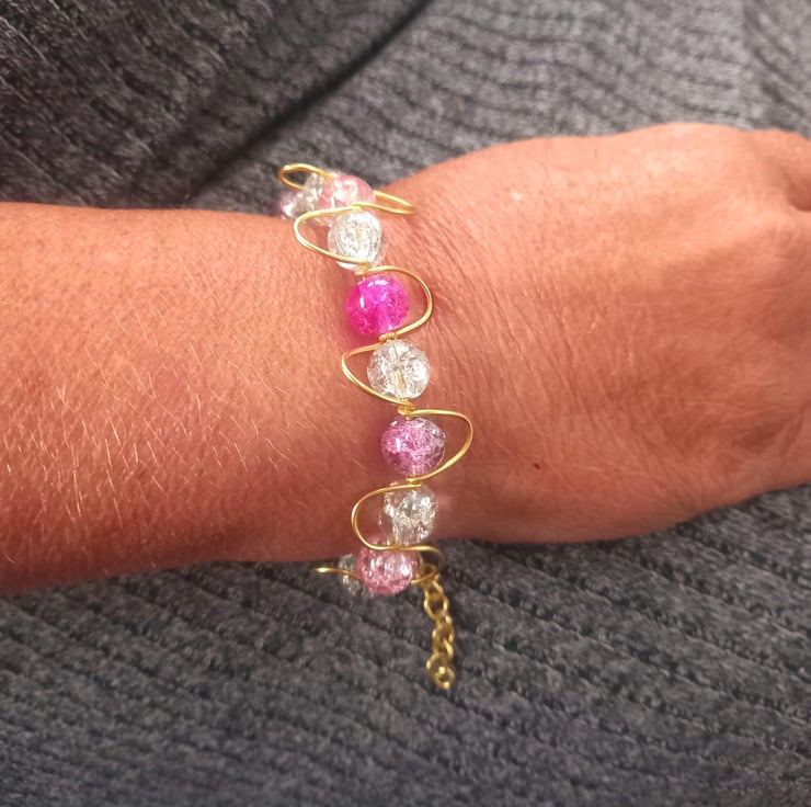 Beautiful Galaxy Bracelet, made with crackle beads and wrap around copper wire. As this product has been handmade, colour and shapes may vary.