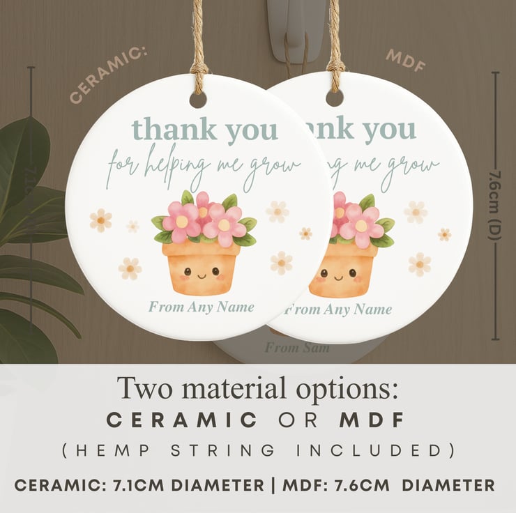 Available in ceramic or MDF, this hanging decoration is perfect for end-of-term gifts, nursery staff, teaching assistants, childminders, and key workers. Supplied with a natural hemp string so it’s ready to hang straight away.