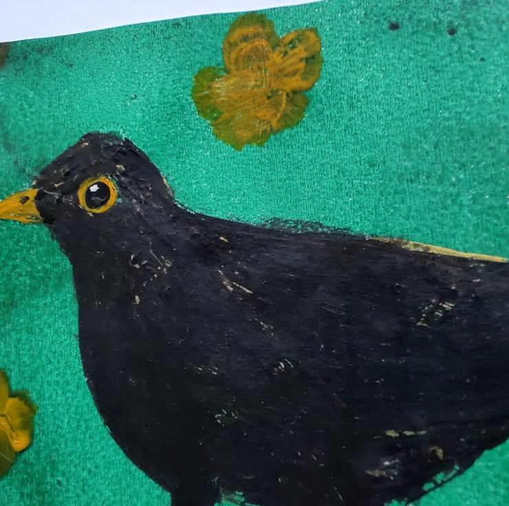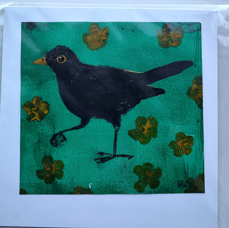 I love watching blackbirds, they know their own minds are have their own characters. This bright monoprint aims to capture some of the spirit of the blackbird as he struts across the summer grass.