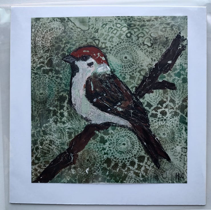 The print measures around 14 cm x 14 cm and will come to you mounted on a piece of mountboard and wrapped in cellophane to protect it.