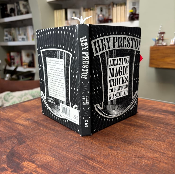 Step into a world of wonder, illusion and chaos with this handcrafted Magician’s Room Book Nook. Designed to sit snugly between your books, this enchanting miniature captures the charm of a vintage magic show, complete with rabbits, doves, cards and classic magician’s props.