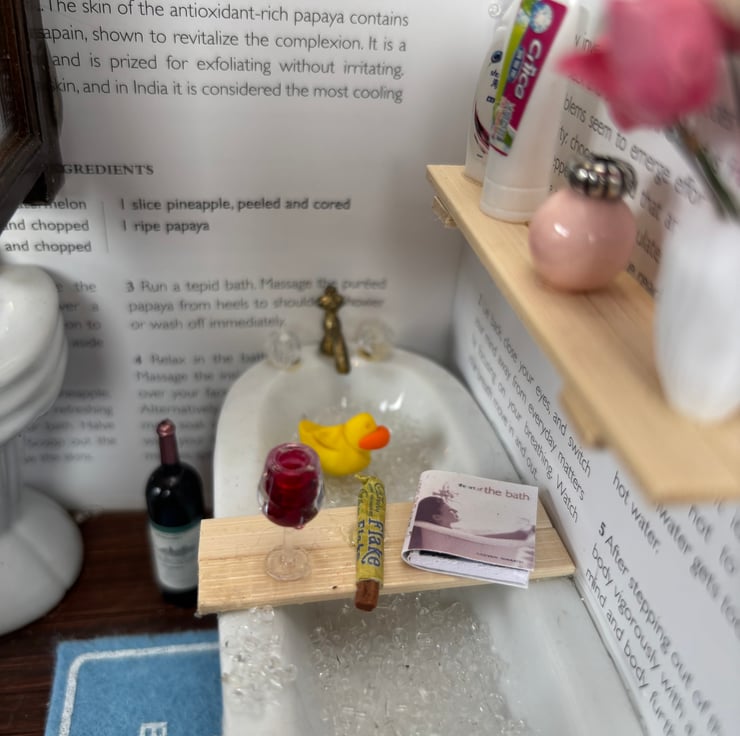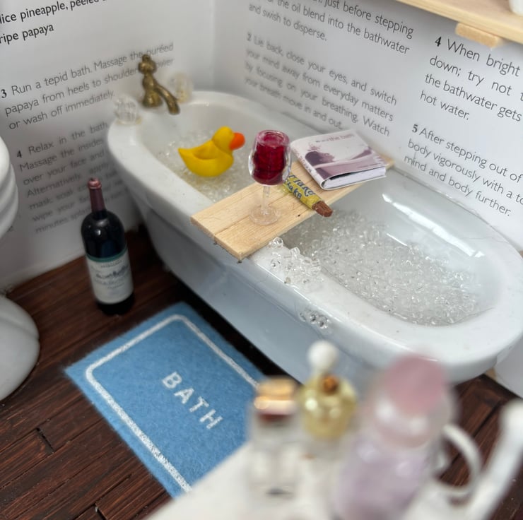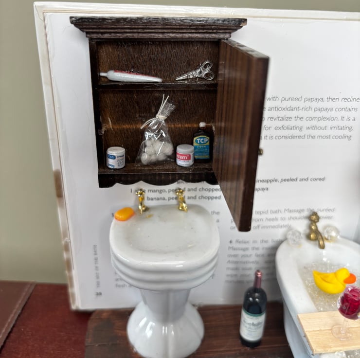‘The Art of the Bath’ is certainly being practised in this one - look at all those lovely bubbles! This one is a little place to escape into and relax. It’s all in the details and it would spoil the fun to list them all! The cupboard opens to reveal more tiny details on this one.