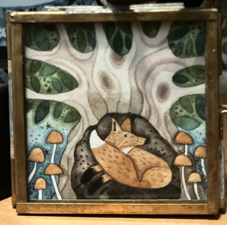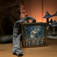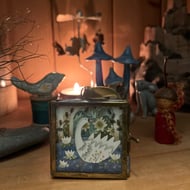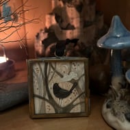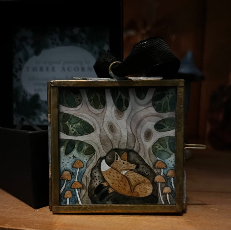 Safe Haven is an original framed miniature collectable painting presented in a Three Acorns gift box. It’s approximately 5cm square and has a ribbon for hanging.