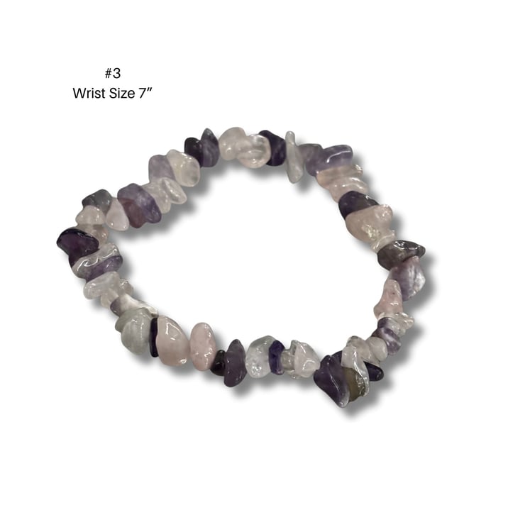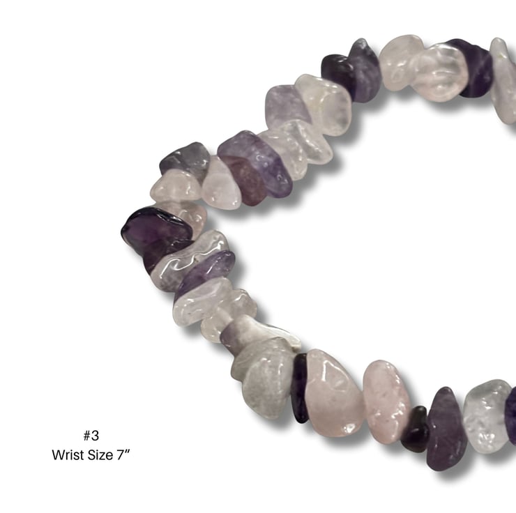 Bracelet 3 is made with soft purple gemstone-style chip beads, offering a gentle pastel tone with natural texture, making this a lovely everyday piece.
