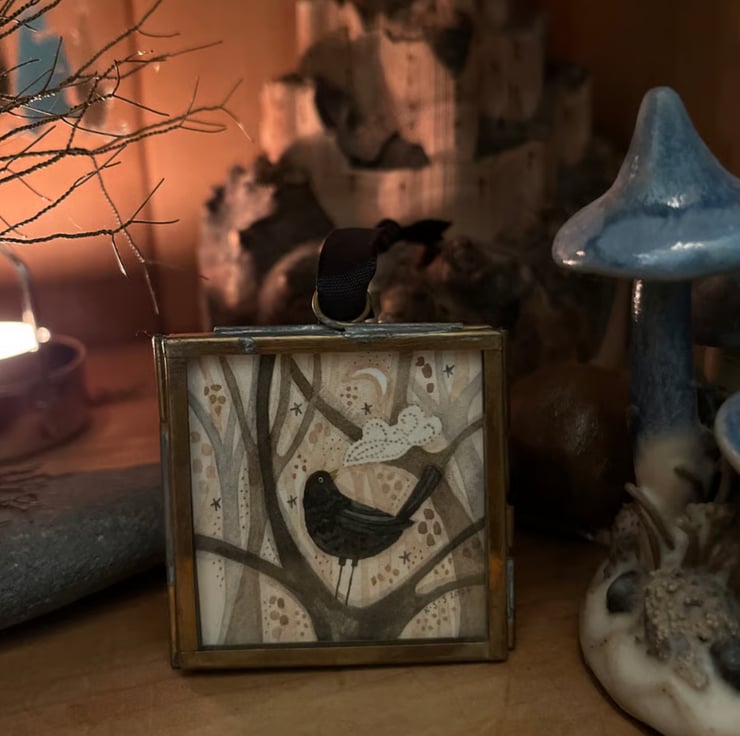 A Song for the Morning Moon is a framed collectable miniature. Presented in a Three Acorns gift box and with ribbon for hanging.