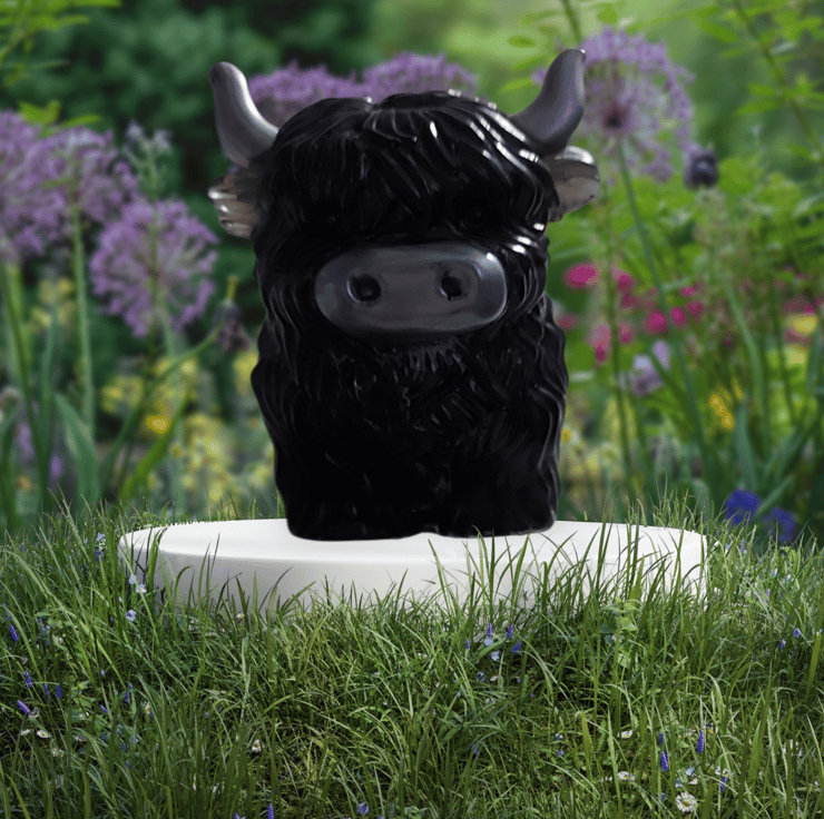 Beautiful handmade resin highland cow, black with silver horns this little guy would be a beautiful gift either for yourself or a loved one