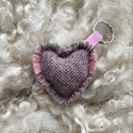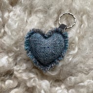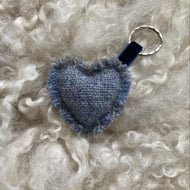 Handmade using our handwoven wool fabric. Handwoven cloth using Jamiesons of Shetland wool. Finished with a dark mustard yellow velvet tab and a nickel plated ripple effect keyring