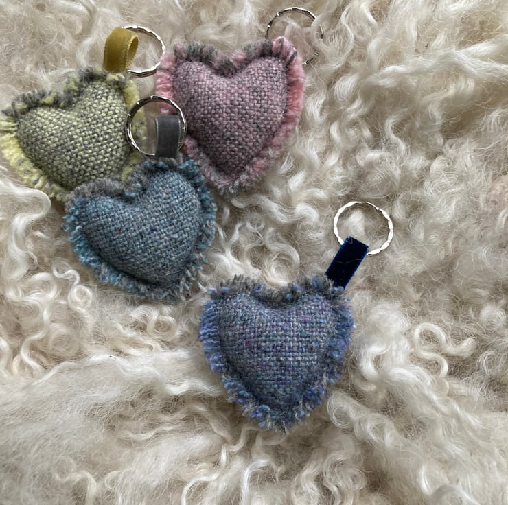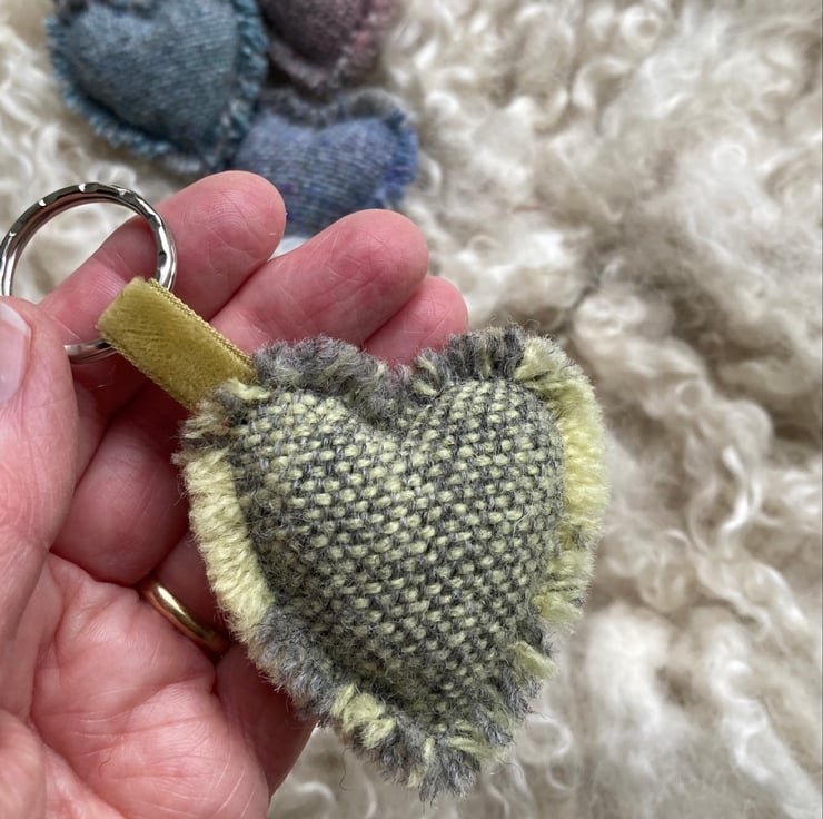 As small girls we always loved creating and making items with fabric, so to use our own handwoven wool cloth designs is very special to us. Any leftover fabric is used to make our heart keyrings, so nothing is wasted. The shades we choose for all our items, simply reflect our love of the changing seasons and landscape where we live.