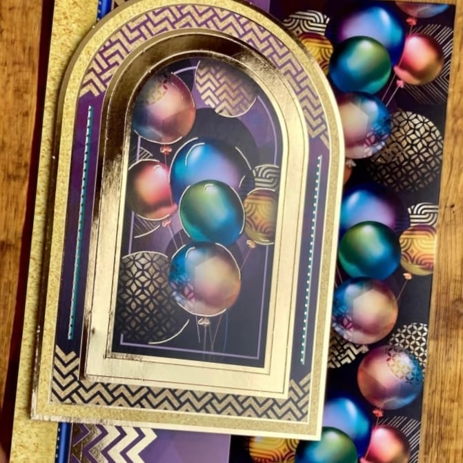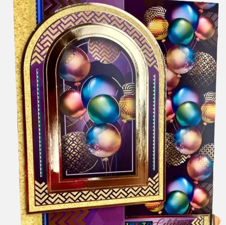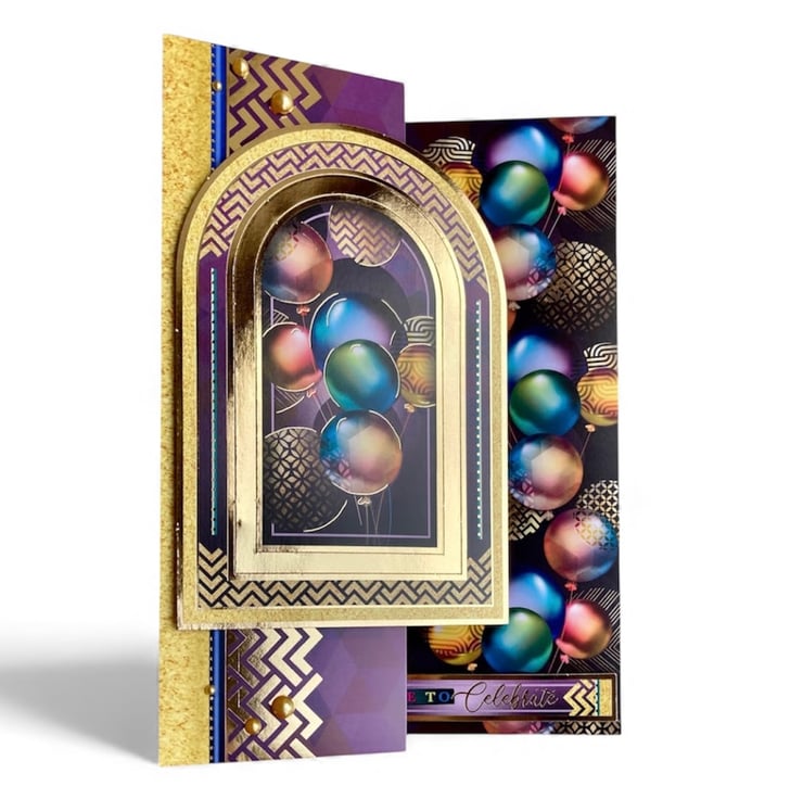 A striking 3D balloon topper with an elegant gold surround takes centre stage, while the phrase “Time to Celebrate” is beautifully applied in raised 3D lettering for added depth and impact. Finished with delicate gold faux pearls, this card perfectly blends fun, glamour, and sophistication.