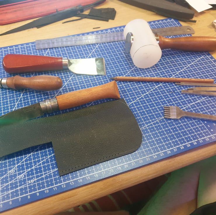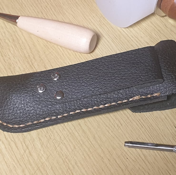 Hand stitched leather belt pouch for No.9 opinel.