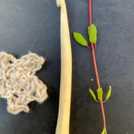 The hook is about 155mm long. The handle has a diameter of about 12mm, and still has some bark and lichen on it, giving it some pretty texture. It has been tested to ensure there are no snags.