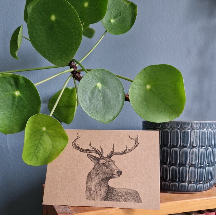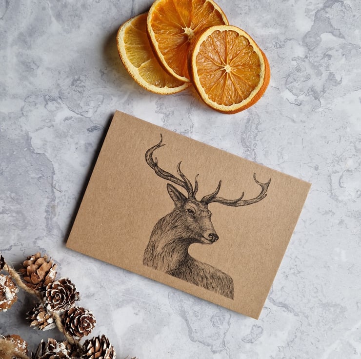 Pen drawing of a stag on kraft card. With a blank inside this card is perfect for filling with your own personal message.