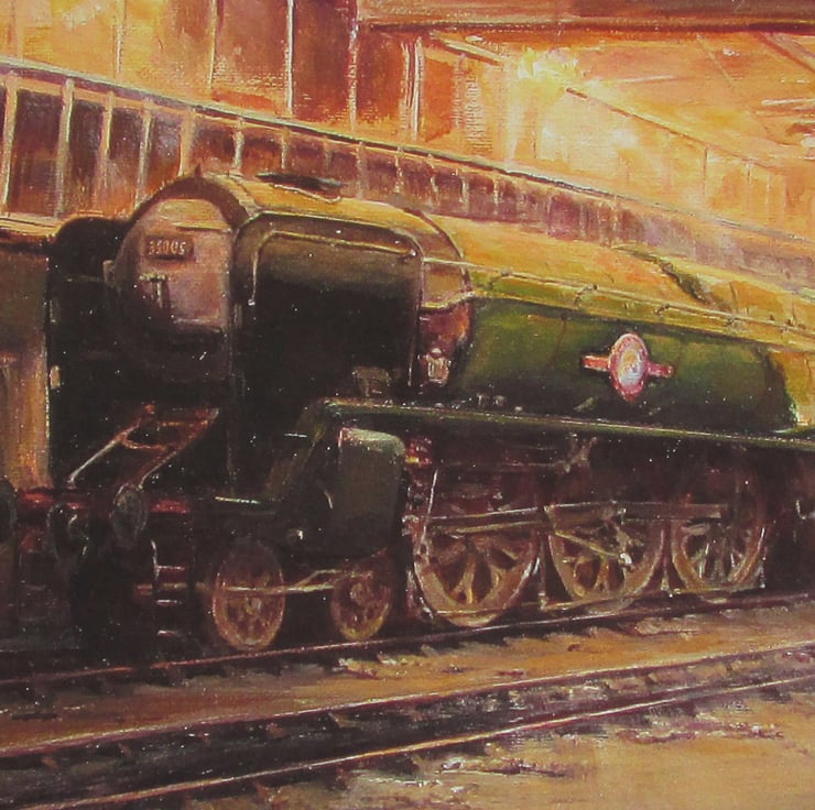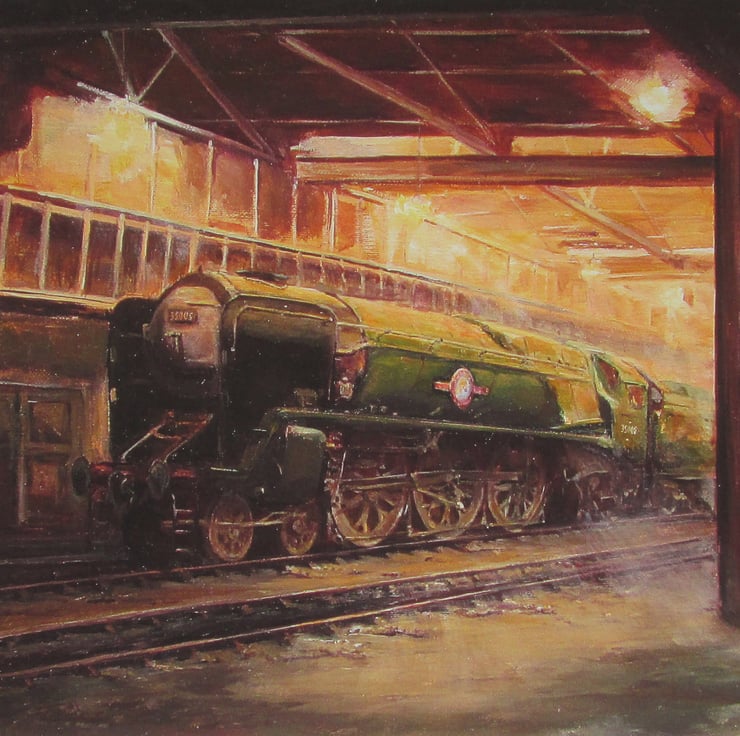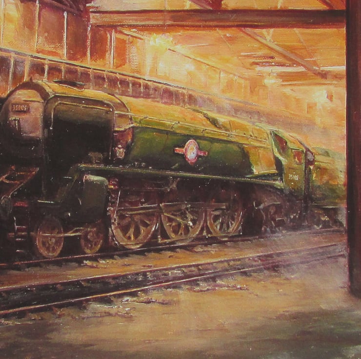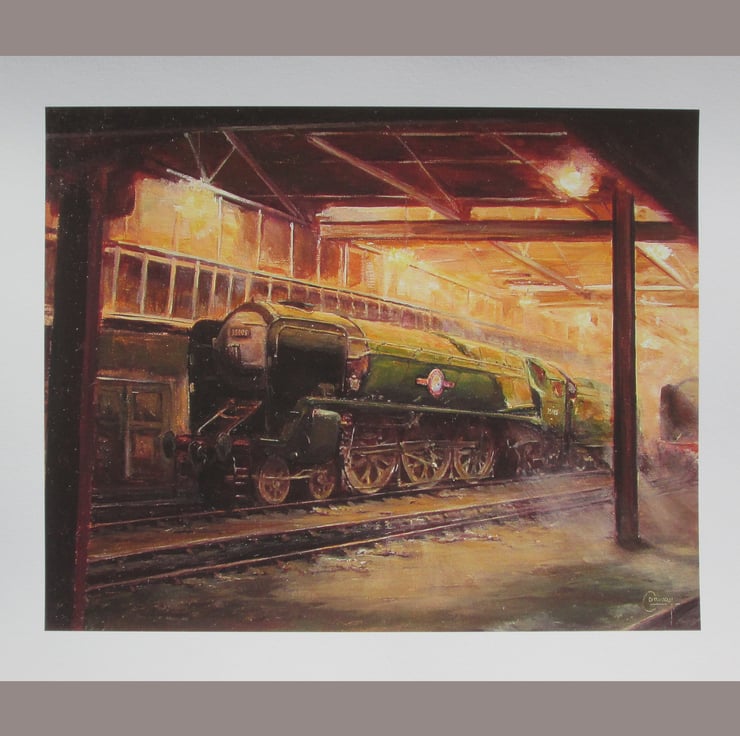 A painting of this most magnificent Bulleid Pacific Loco on a rare visit to this atmospheric and iconic location, in the 1950s.