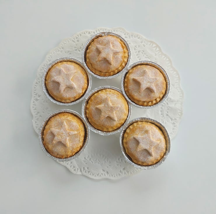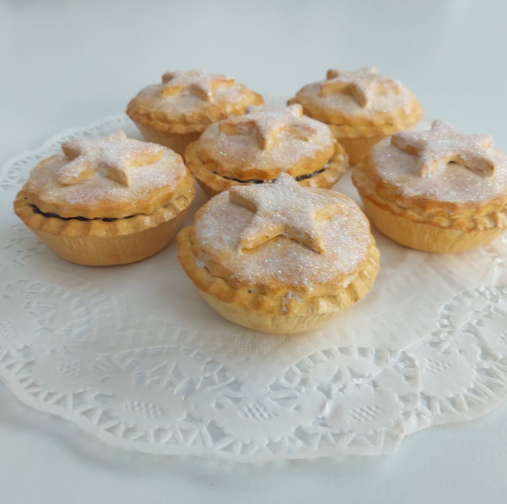 Set of 6 Handcrafted Fake Artificial Mince Pies.