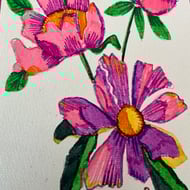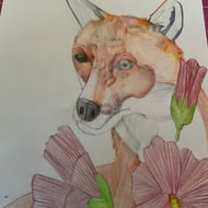 A4 print taken from original artwork of a Chinese tiger in felttip pen. Surrounded by pink flowers. A touch of coloured ball point pen to add a bit of texture.