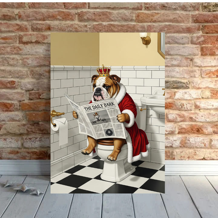 Bull Dog Sat on the loo reading a newspaper Bathroom Wall Prints