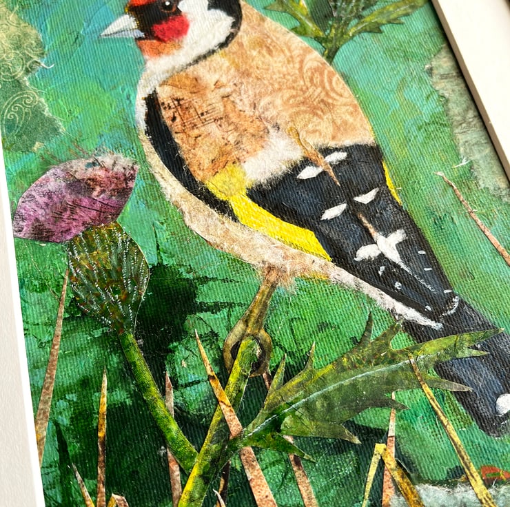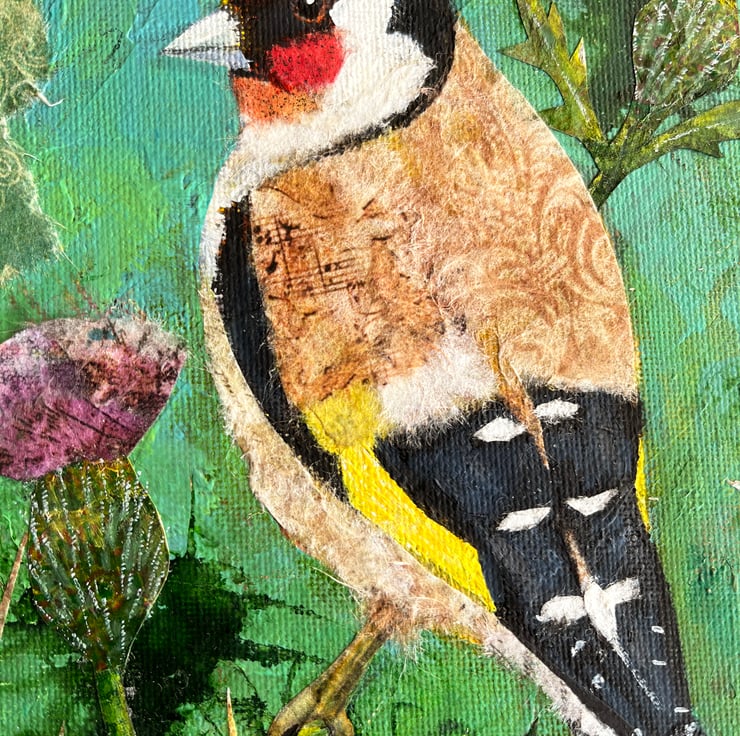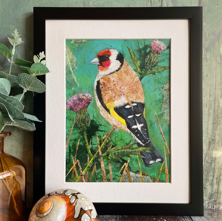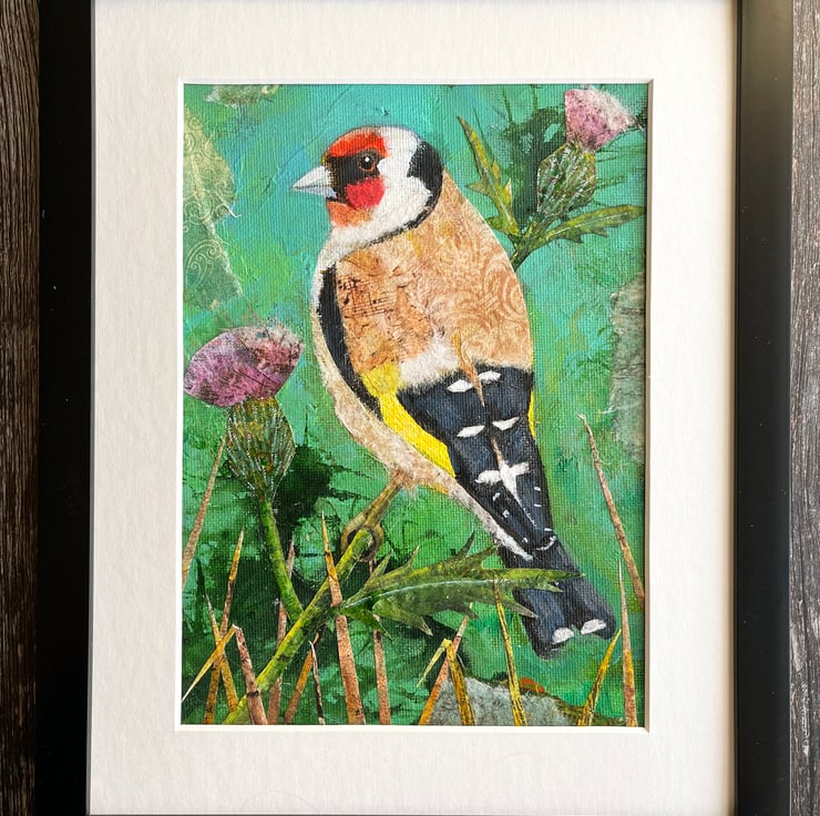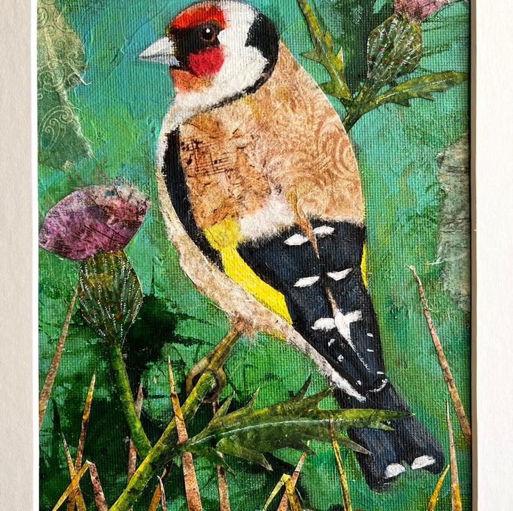 The latest artwork in my 'Birds & blooms" collection features one of my favourite birds, the goldfinch.