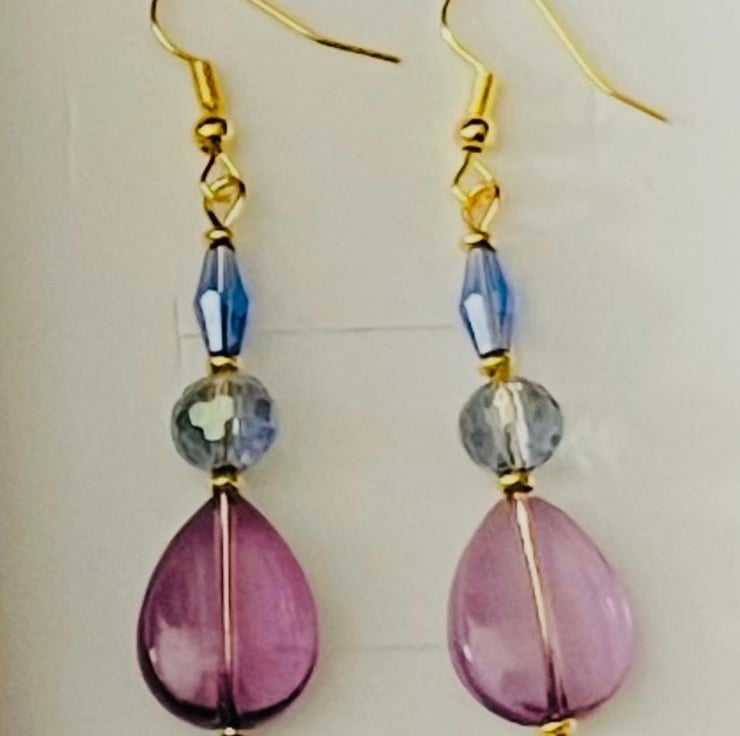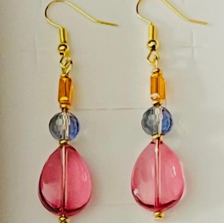 Stunning, sparkling 2nd edition 'Waterdrop' earrings by Calliope Midnight. Choose from 4 designs; peach, pink/orange, grey/blue, and violet/blue. Please specify chosen colour at check out.